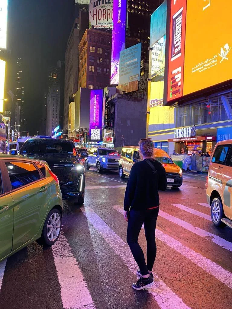 Man kennt ihn, den berühmten Times Square. Am Tag nicht so schön, jedoch am Abend beeindruckend und mega cool: die leuchtenden Werbetafeln, die Menschenmassen und das allgegenwärtige Gefühl von Energie und Aufregung. Überall Menschen, Touris, Locals, Polizei, verrückte verkleidete oder fast nackte Menschen, Disney-Figuren, Straßenkünstler, Essensstände, laute Musik, viel Verkehr und Shops, Shops, Shops. Die schwarzen Riesenschiffe alias Autos siehst du auch überall. Wahrscheinlich Geschäftsleute, oder Menschen, die etwas zu sagen haben.