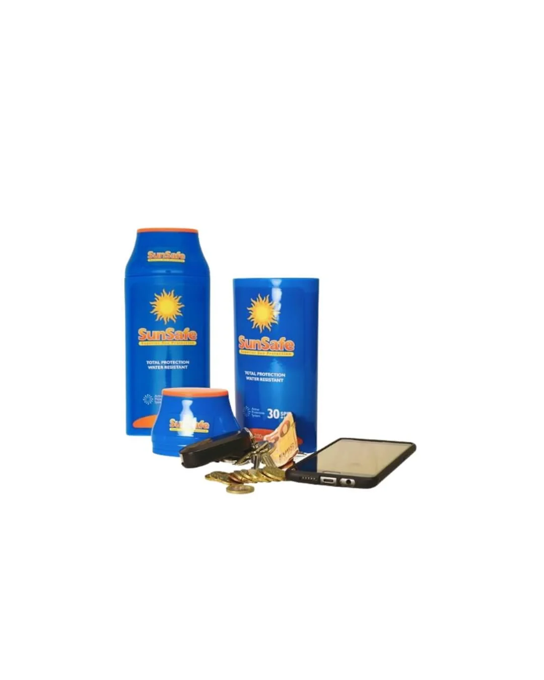 Sieht aus wie Sonnencreme, ist aber ein Geheimfach für Schlüssel, Geld oder Karten. Perfekt für Strandtage – unauffällig und sicher.